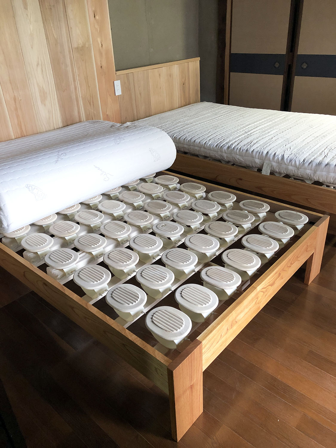 ◼️ 古民家を利用した宿泊施設を始めるにあたりご相談いただきました。宿泊施設「石見銀山群言堂・阿部家」の寝具がよかったとのことで金澤屋にたどり着いたそう。なるべく自然素材のものを使いたいとのことで、まずは羊毛の敷ふとんをきっかけにベッド類もご購入くださいました。その他、U字型枕や羽毛ふとん、ガーゼケットやシーツ・カバー類などもお納めしました。