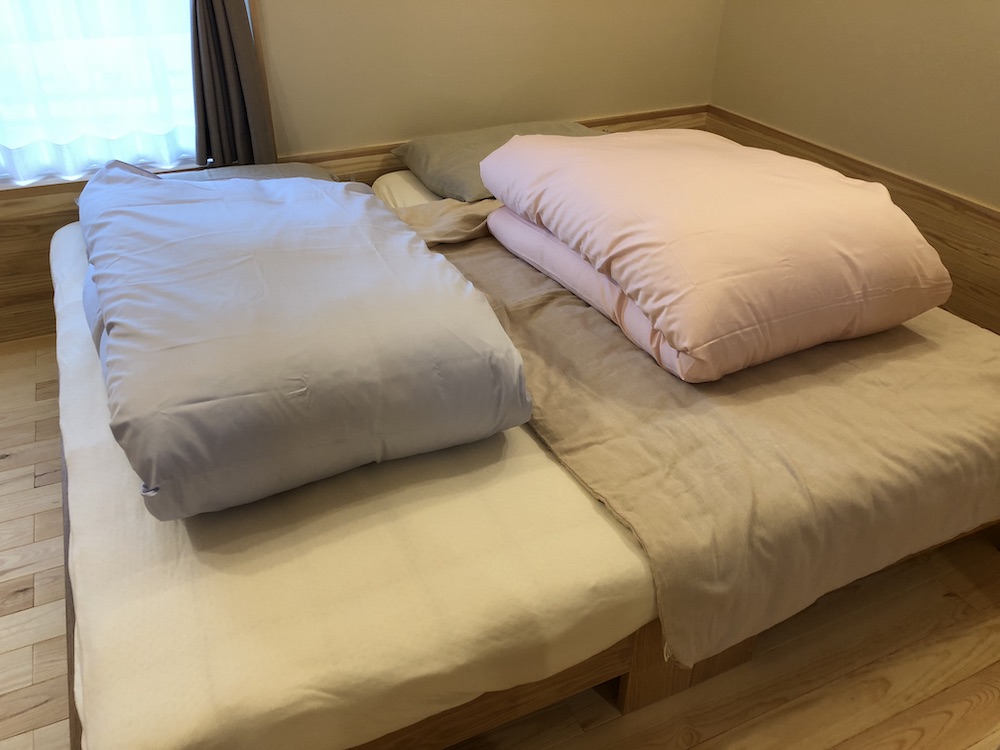 ◼️ 群馬県藤岡市 M様 ◼️ ご購入商品 ・ベッドフレーム【寛】タモ材 シングル×4 ・ウッドスプリング【Bodydoctor】 シングル×4 ・マットレス【Bodydoctor】 シングル×4 ・RELAXウールベッドパッド レギュラー シングル×4 ・その他 ◼️ベッド一式のほか、カバー類やムートン、座布団などもお納めしました。