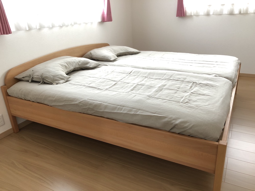 ◼️ 群馬県高崎市 S様 ◼️ ご購入商品 ・ベッドフレーム【FIELD】ブナ材 ツイン ・RELAXウッドスプリング【Naturflex】シングル×2 ・RELAXラテックスマットレス【Silverness9cm】シングル×2 ・その他 ◼️眠室をご利用くださいました。ベッド一式のほか、枕やシーツなどお納めしました。