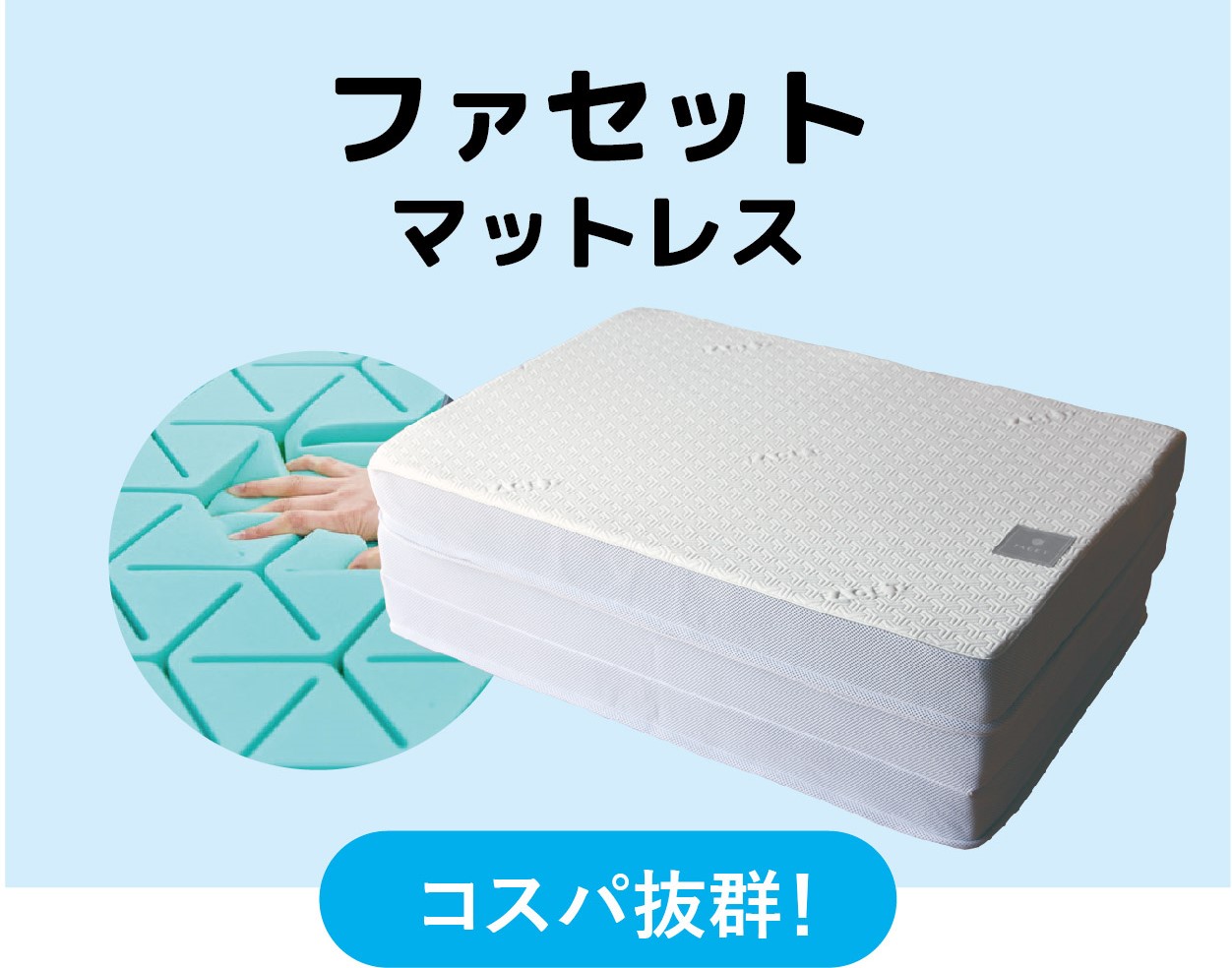 三つ折りマットレスなのに、まるでホテルのベッドのような贅沢な寝心地で金澤屋スタッフの評価の高い1枚。