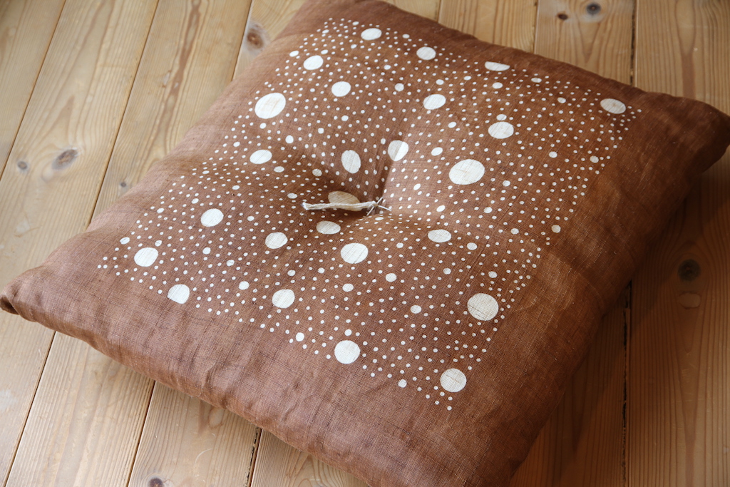 染色作家 宮崎登志雄さんが1点1点手描き・手染めした本麻生地で仕立てた座布団です。