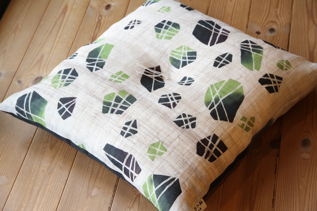 染色作家 宮崎登志雄さんが1点1点手描き・手染めした本麻生地で仕立てた座布団です。